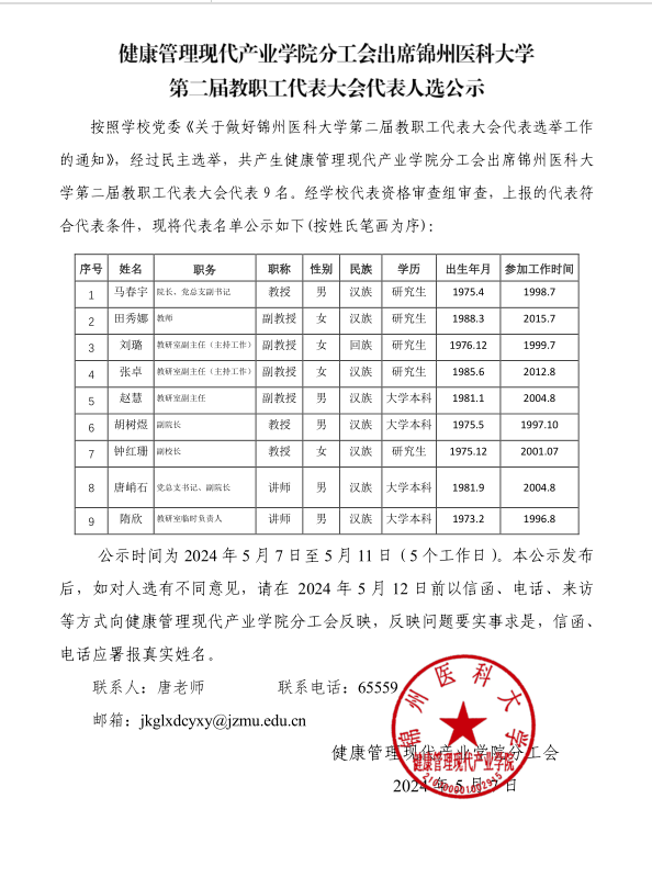 公司分工会出席DB旗舰官方网站入口第二届教职工代表大会代表人选公示