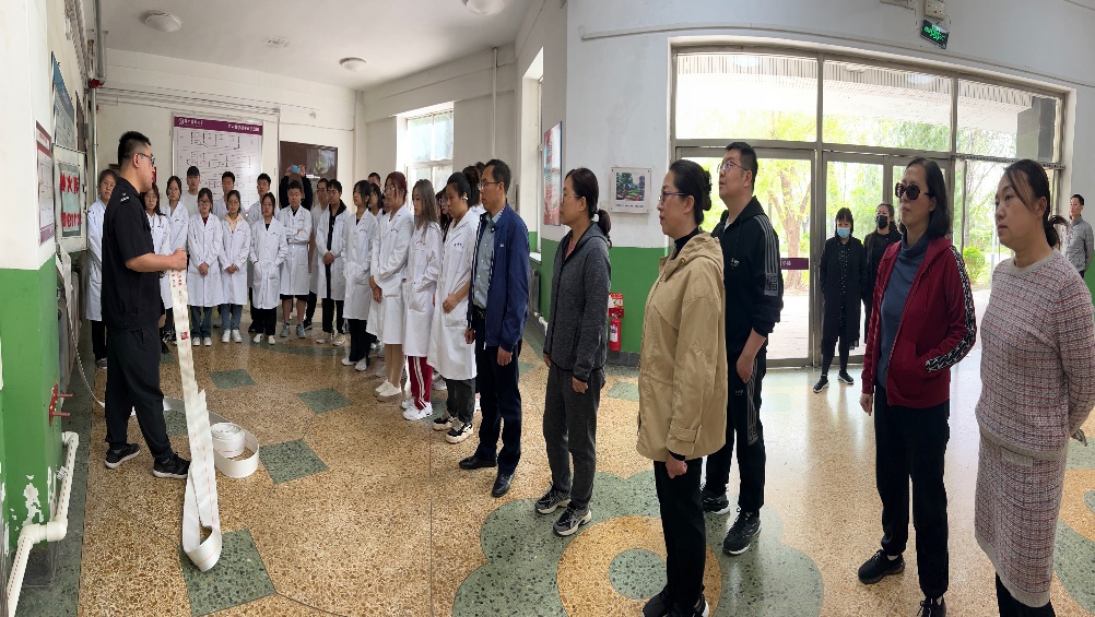 活动中,安全保卫处工作人员为师生详细讲解了安全用电要求、灭火器的使用方法、突发火灾后的逃生技能和消防栓的操作与使用,随后师生有序进行了火灾逃生及消防栓灭火演练。